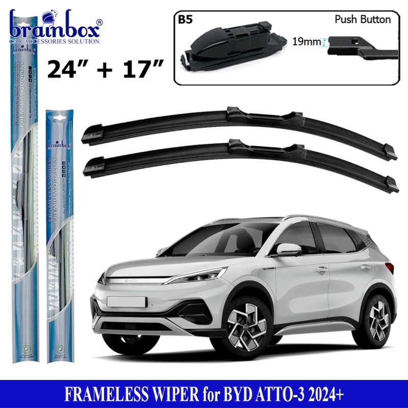 Brainbox Frameless Wiper Mobil BYD Atto 3 2024+ Wiper Blade Karet Pembersih Kaca Mobil Windshield