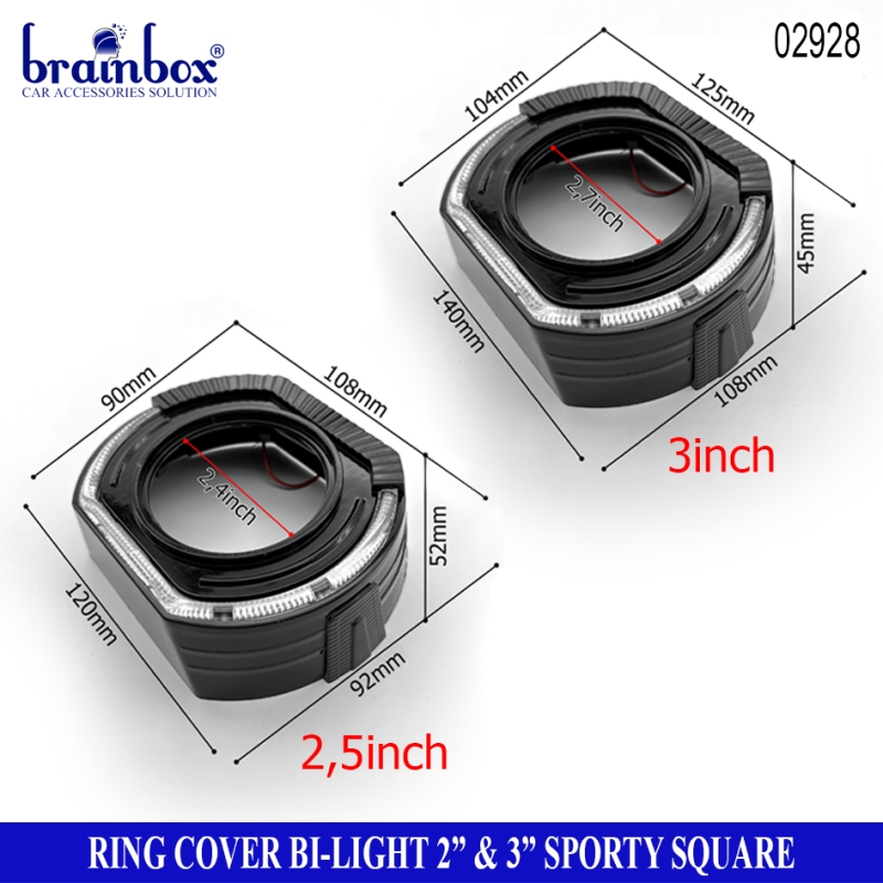 Headlight Ring Cover Bi-Light 2.5 Inch 3 Inch Sporty Square Head Lamp