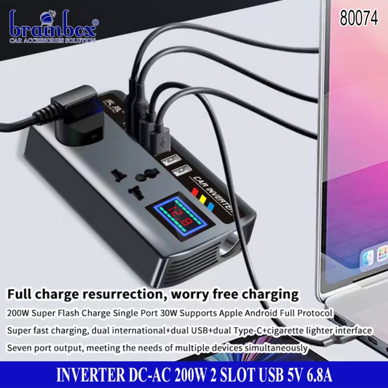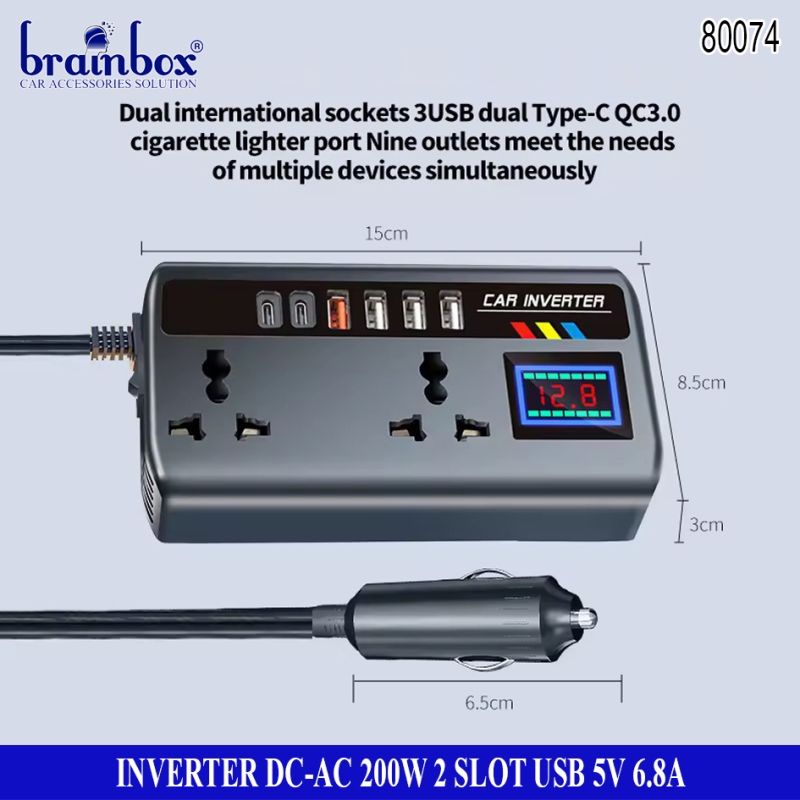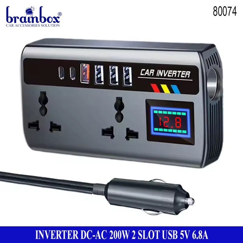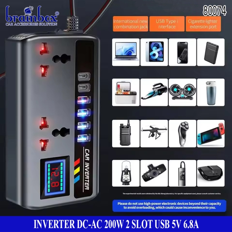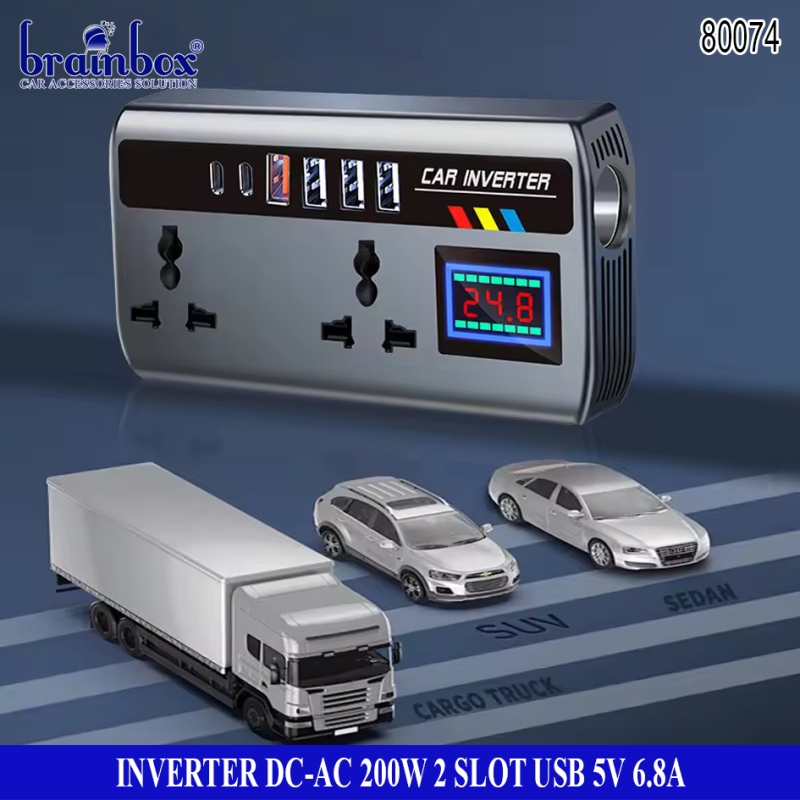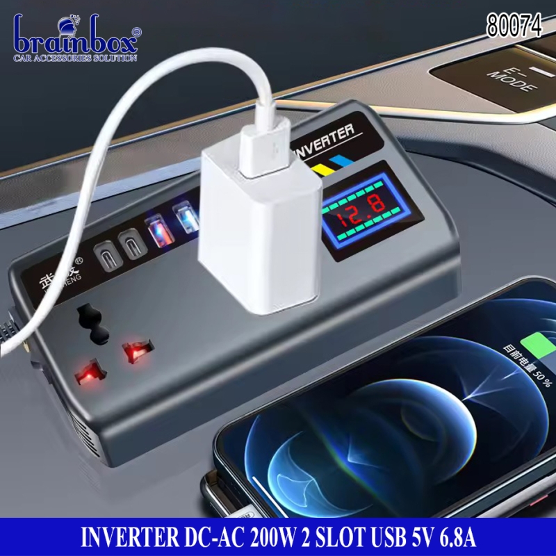 Inverter DC to AC 200 Watt 2 Slot USB 5V-6.8A Pengubah Arus Aki ke Arus Rumah
